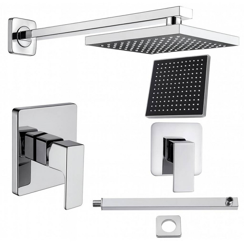 Kit Completo Ducha 20cm, Mezclador Ducha Y Tubo Cuadrado
