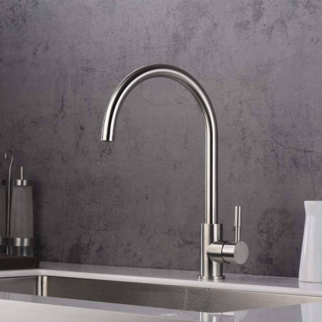 Griferia Mezclador Lavaplatos Monocontrol En Acero Aireador