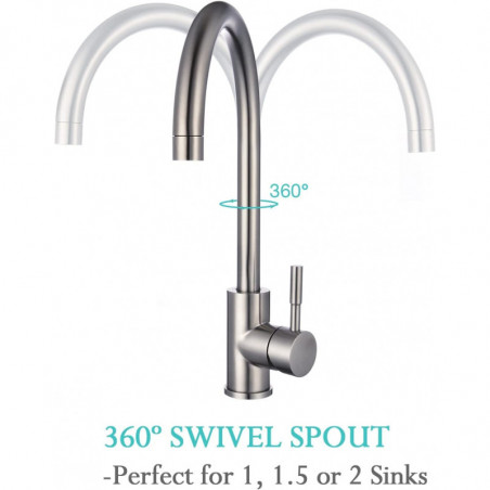 Cuerpo y pico fabricados en Acero - Sistema de cierre de cartucho cerámico. - Incluye aireador para un chorro más confortable. - Recomendado para uso de fregaderos de cocina o en lavanderías. - Pico giratorio para facilitar las labores de limpieza. CARACTERÍSTICAS: - Superficie libre de defectos o ralladuras. - Producto probado para resistir oxidación o corrosión. - Funcionamiento adecuado desde 20 hasta 125 PSI. - Sistema de cierre probado hasta los 500.000 ciclos, sin presentar fugas. - Sistema de cierre probado hasta las 500 PSI, sin presentar fugas Entregamos factura