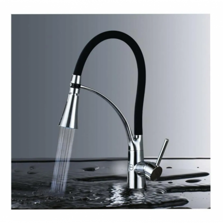 GRIFERIA LAVAPLATOS MONOCONTROL MEZCLADOR Griferia para cocina industrial o cocina con lavaplatos grande, con cabezal móvil siliconado permite un lavado de fácil debido a su manguera flexible. Sistema: Monocontrol mezclador Medidas: En altura 43 cm . salida 22 cm y ancho 4,8 de base. Color Cromado Elaborado con cuerpo interno de bronce con acabado de cromo. Contiene una grifería un herraje de ajuste y dos acoples flexo-metálicos. Recomendación: Instalar de formar manual, un usar herramientas de ajuste sobre el cromado, al igual en las manguera.