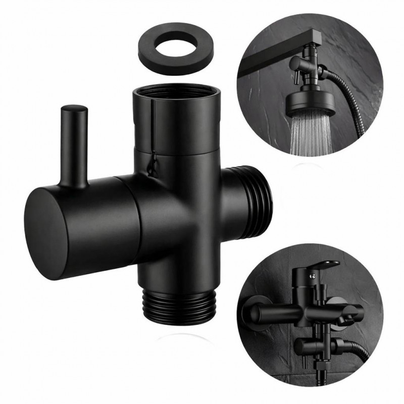 Desviador Negro Pequeño Metálico Para Ducha O Teleducha
