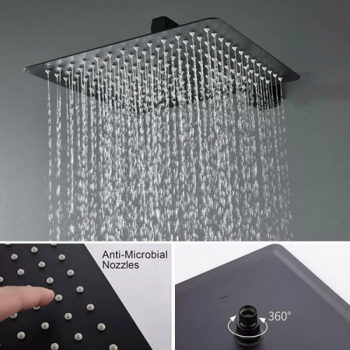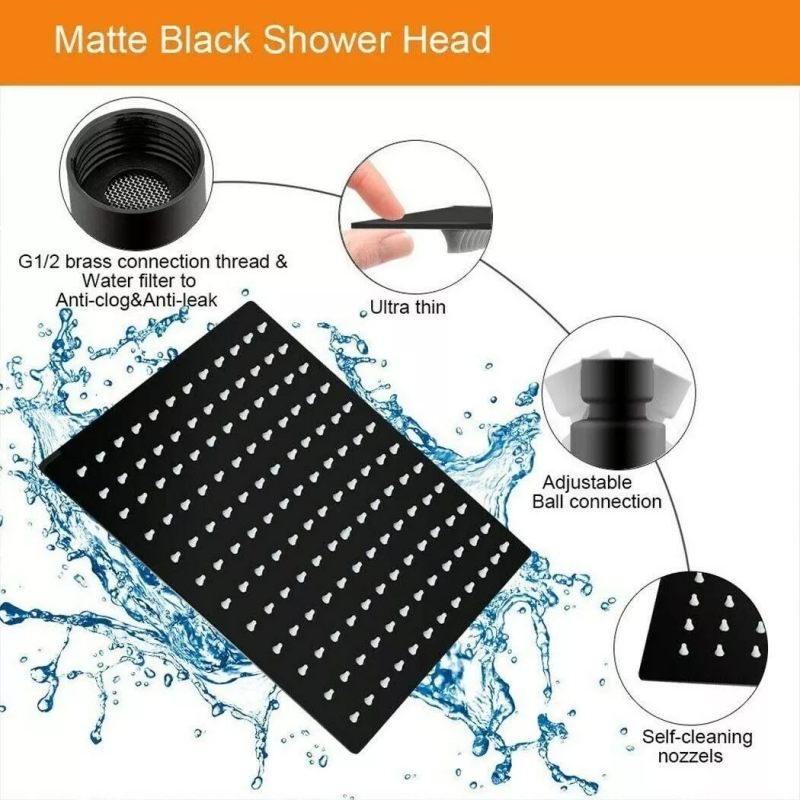 Regadera Para Ducha Color Negro 25cm Acabado Mate(sin Tubo)