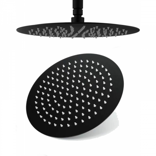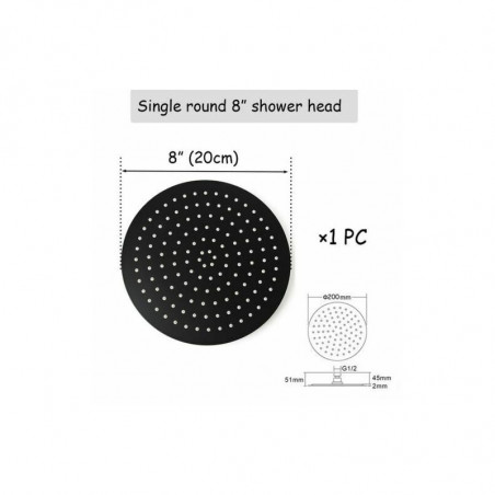 Regadera Para Ducha Color Negro 20cm Acabado Mate-tubo Techo