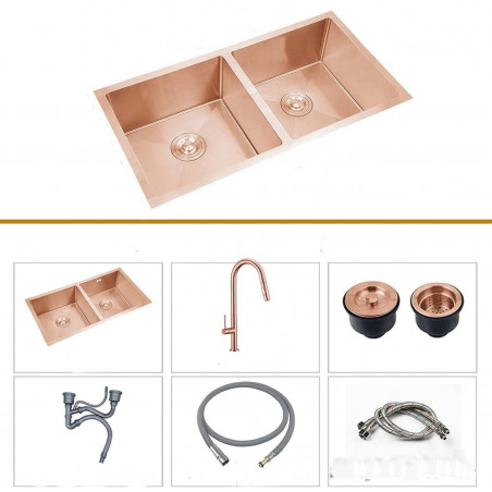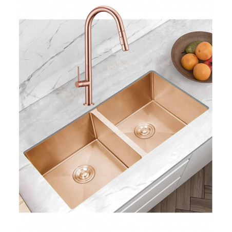 Kit Completo Lavaplatos Antiruido Oro Rosa Griferia Pull Out