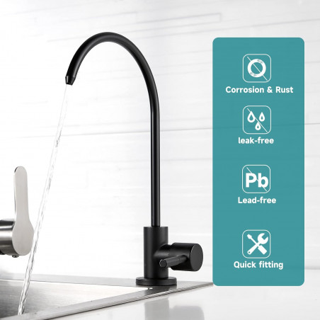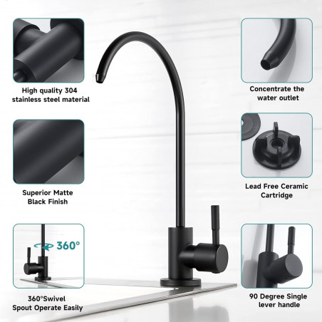 Grifería Tames Negra Acero 304 Para Conectar Filtro De Agua