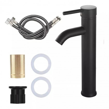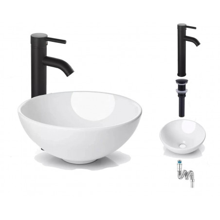 Kit Completo Lavamanos Blanco Tazon- Desagüe -Griferia Negra