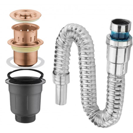 Desagüe Canastilla Oro Rosa Opaco Lavaplatos +sifon Flexible