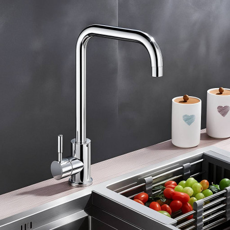 Griferia Lavaplatos Cuello Telescópico Cigno Mezclador Tm Plateado Brillante