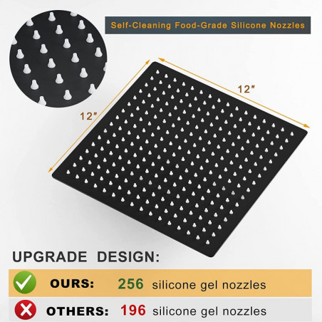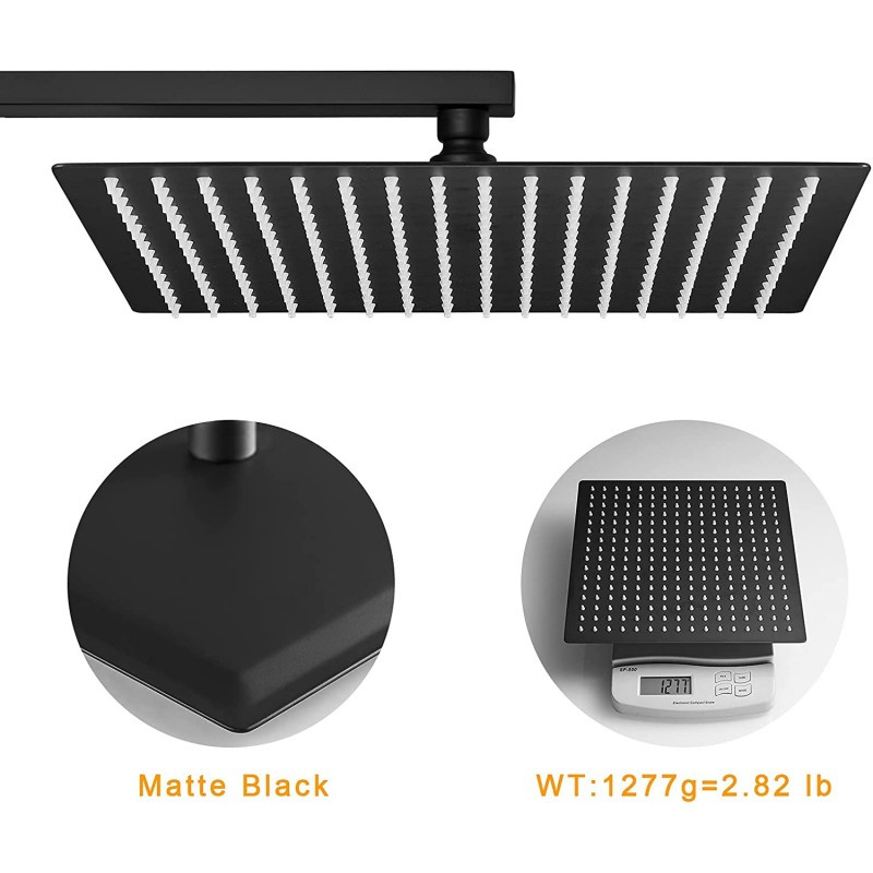 Regadera Ducha 30cm Acero Color Negro Matte-tubo Cuadrado