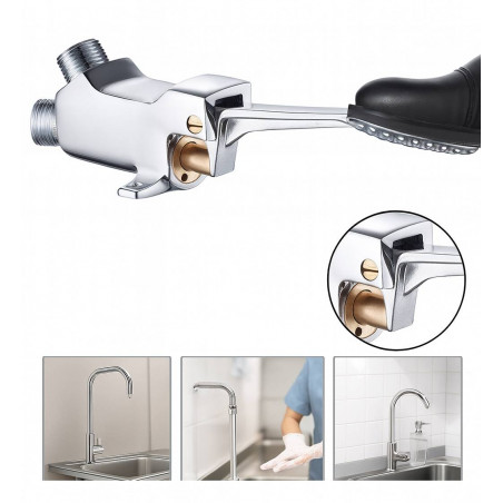 Cuerpo y pico fabricados en bronce. Llave de pedal. Repuesto en bronce con opturacion por presión. - Conexión a 1/2 pulgada para lavamanos y lavaplatos. - Sistema de cierre Automático . - Incluye chazos expansivos para instalar al piso.. - Recomendado para uso de fregaderos de cocina, lavamanos o en lavanderías. CARACTERÍSTICAS: - Superficie libre de defectos o ralladuras. - Producto probado para resistir oxidación o corrosión. - Funcionamiento adecuado desde 20 hasta 125 PSI. - Sistema de cierre probado hasta los 500.000 ciclos, sin presentar fugas. - Sistema de cierre probado hasta las 500 PSI, sin presentar fugas Entregamos factura con Iva Servicio pos venta para procesos de garantía.