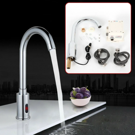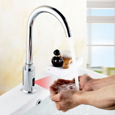 Griferia de sensor de activación automática de uso institucional cuello ganso, esta llave se activa por infrarrojo. Usada para Laboratorios, clínicas , Hospitales. Esta elaborada en aleación de cobre y Zinc . lo que la hace ideal para estos casos ya que tiene muy bajo nivel de plomo. (Material que afecta la salud ). -Medidas: 35 cm de alto x 17 cm de salida -Llave de sensor automática con activación de movimiento. -Sensor lavamanos. -Uso Institucional. - Griferia para lavamanos institucional con sensor automático - Especificaciones: Peso neto de un solo grifo es de alrededor de 2 lbs, construcción de latón macizo para mayor fiabilidad y rendimiento duradero. - Funcionamiento: Cuando el sensor está activado, el grifo automáticamente suministrará agua una vez que las manos estén dentro del rango de detección y se detendrá cuando retire sus manos. - Potencia: Esta grifería puede alimentarse con pilas 4 AA (no incluidas) o enchufarse a una toma de corriente de 110v. - Instalación fácil. - Fiabilidad: Cada grifo se prueba a presión de agua alta para garantizar su calidad antes del envío. -Garantía un año - Se entrega factura régimen simplificado.