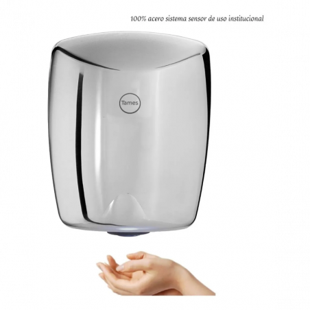 SECADOR DE MANOS MINITORNADO EN ACERO INOXIDABLE, SENSOR -1350W Este secador tiene luz led que enciende cuando el secador está activado, además tiene un Switch o botón que le permite seleccionar entre aire frio o caliente. -Secador de manos de uso institucional elaborado en acero de alta resistencia, cumple reglamentación estandarizada. -Activación automática con sensor infrarrojo -Tráfico pesado -110 voltios -velocidad 25 m/s -Medidas 26,8 cm x 17,6 cm x 24 cm -Motor con escobillas -Protección 1XP -Sistema automático con sensor de 10 a 15 cm -Ruido a 60db -Ocupa poco espacio debido a su tamaño Garantía 1 año