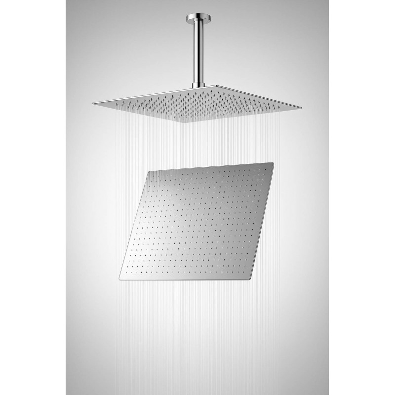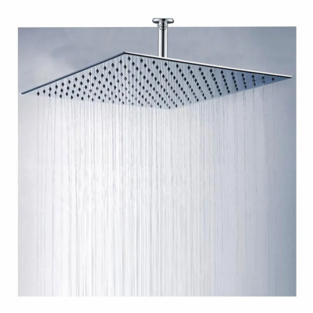 Ducha, Regadera Cuadrada Metálica, 40 cm con Tubo de Techo