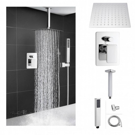 Mezclador Desviador, Ducha 20 cm-Tubo Techo-Teleducha Completa, Kit mezclador teleducha, Mezclador desviador cuadrado ducha.