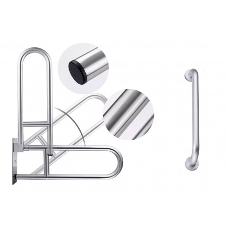 Kit Barra de Seguridad Abatible + Barra Lineal 40cm en Acero Inoxidable 304