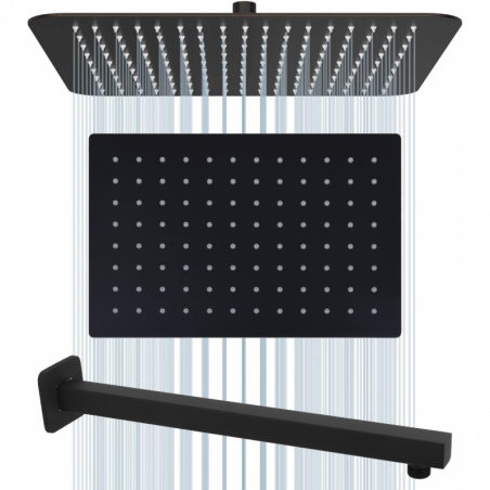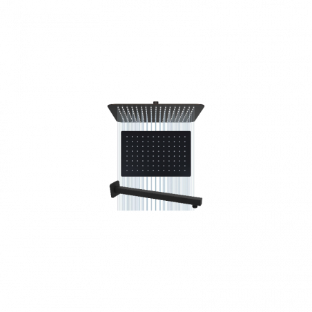 - El kit incluye regadera rectangular 30 cm x 20 cm y tubo a pared 40 cm cuadrado negro.