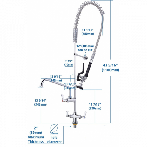 - La altura de esta griferia es 110 cm, (al expandirse aumenta la altura por tal motivo debes tener disponibilidad de 130 cm en la altura o no tener mueble superior), favor verificar que el espacio de instalación se ajuste al tamaño.