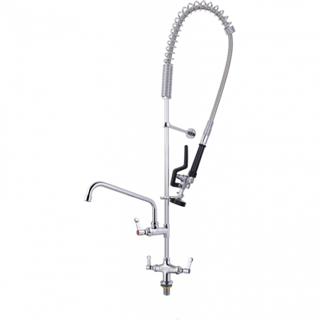 - Griferia para cocina industrial o cocina con lavaplatos grande, con cabezal móvil permite un lavado de fácil debido a su manguera flexible.
