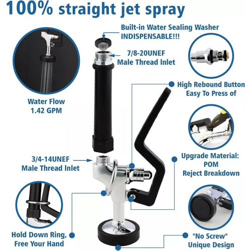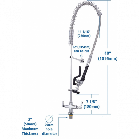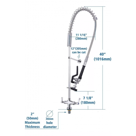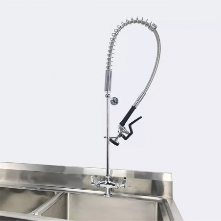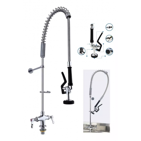 - Especial para restaurantes, eventos, catering, frigoríficos y cocinas industriales, se comercializan los repuestos tales como, cartuchos internos, manijas, mangueras y cabezal spray de control. La altura de esta griferia es 110 cm, (al expandirse aumenta la altura por tal motivo debes tener disponibilidad de 130 cm en la altura o no tener mueble superior) favor verificar que el espacio de instalación se ajuste al tamaño.