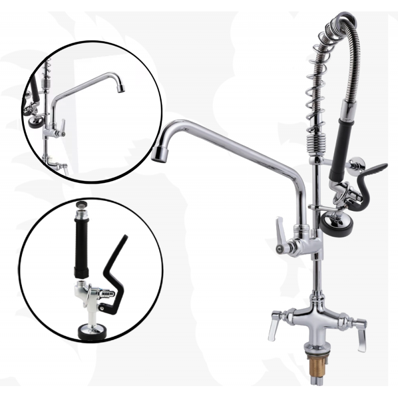 - Griferia lavaplatos monocontrol industrial institucional 70 cm alto trafico doble función para lavaplatos doble poceta especial para restaurantes, eventos, catering, frigoríficos y cocinas industriales. se comercializan los repuestos tales como, cartuchos internos, manijas, mangueras y cabezal spray de control.