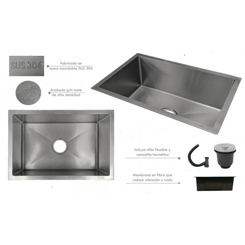 Lavaplatos Anti-Vibratorio 60cm X 40cm Acero Grafito, poceta interna de 55cm x 35cm.
