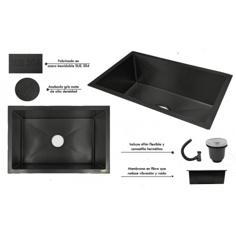 Lavaplatos Anti-Vibratorio 60cm X 40cm Acero Negro Grafito