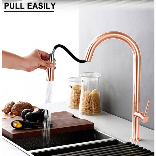 Griferia Lavaplatos Extraible Tokio Oro Rosa Móvil Tames42md
