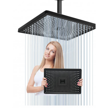 DUCHA ABS ANTICALCAREA ETERNAL MATE NEGRO 30CM X 22CM COMBO CON TUBO A TECHO DE 22CM CUADRADO