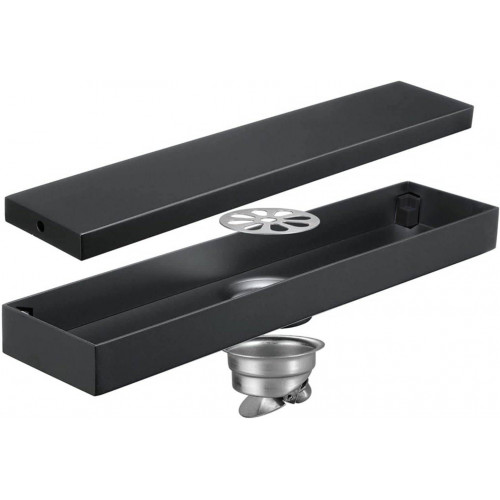 Rejilla de Piso Rectangular 30×10 cm – Acero Inox 304 Negro Mate – Anti Olor y Anti Insectos con Panel Oculto