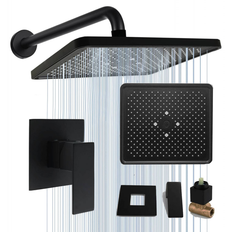 DUCHA ABS ANTICALCAREA MATE NEGRO LINEA ZAFIRO COMBO CON TUBO A PARED Y MEZCLADOR DE DUCHA MONOMANDO T INTERNA EN BRONCE