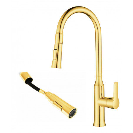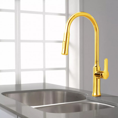 Griferia Lavaplatos Extraible Maglio Dorado Móvil Tames Superior, cabezal telescopico