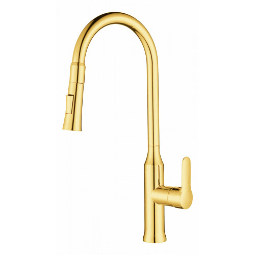 Diseño de Lujo: Grifería de cocina MAGLIO con un acabado dorado brillante, ideal para cocinas de alto nivel y espacios elegantes. Su diseño estilizado y profesional añade un toque de sofisticación a cualquier cocina.