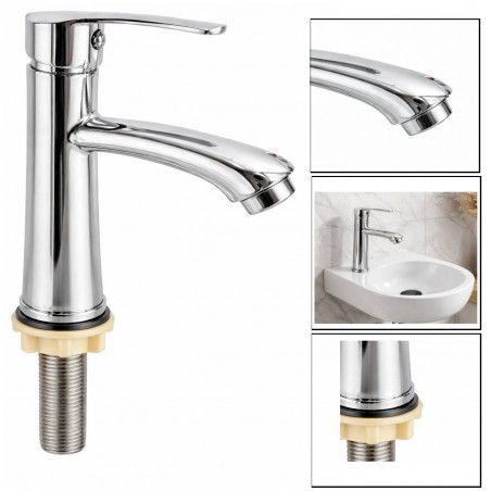 Producto totalmente metálico acero cromado macizo de alta resistencia a la cambios de presión con acabado en cromo brillante de alta calidad. Griferia metal solido especial para lavamanos pequeños.