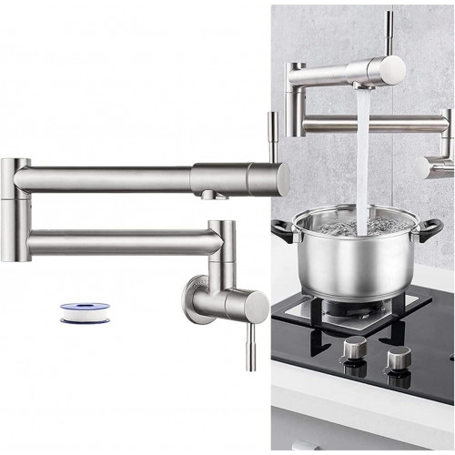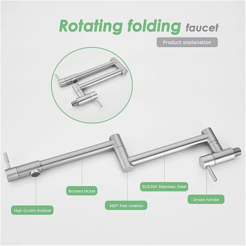 Añade estilo y funcionalidad a tu cocina con nuestro grifo de llenado de ollas en acero inoxidable 304 con acabado satín. Su diseño de montaje en pared ahorra espacio, mientras que el brazo giratorio te permite llenar ollas cómodamente sobre la estufa.