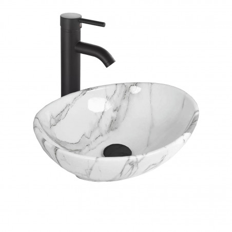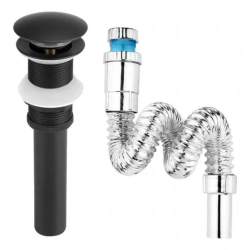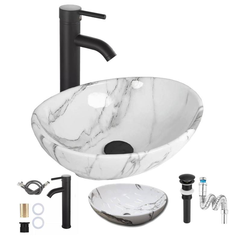 Kit Completo Lavabo Venato Oval-sifón -grifo Negro Mezclador