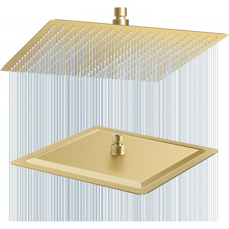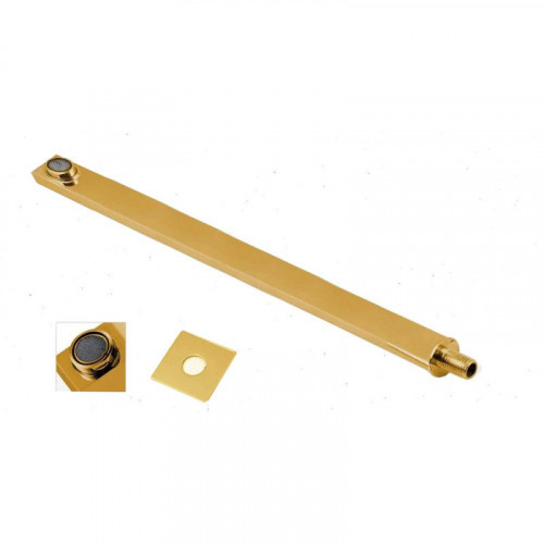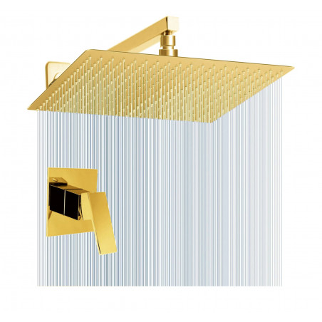 Kit De Regadera dorada Antihongos panel lluvia de 300 a 324 puntos de chorro de 40 cm x 40cm, con tubo pared 40cm. Acabado brillante. Mas mezclador de panel 12cm x 12cm con doble entrada t interna de conexiion estandar de media roscada H x H x H
