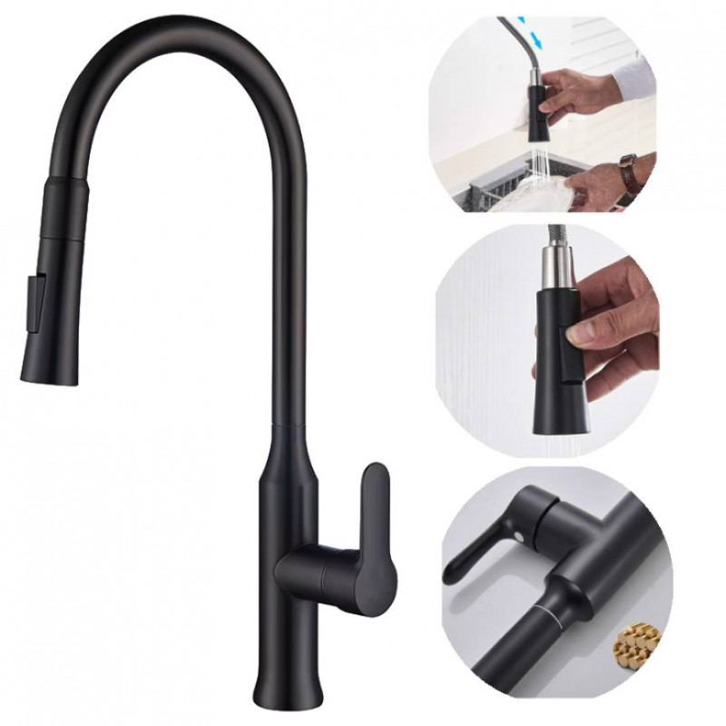 Grifería extraíble Negra Ref Suprema Cabezal Telescópica, cambio de chorro.