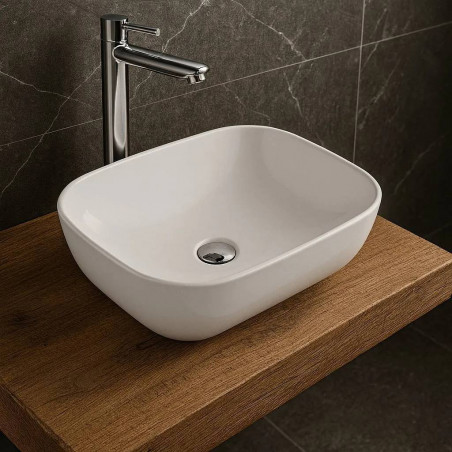 Lavamanos Blanco bordes finos en porcelana con diseño Rectangular bordes suaves diseño pool de 45 X 34 X 13 Cm en profundidad..