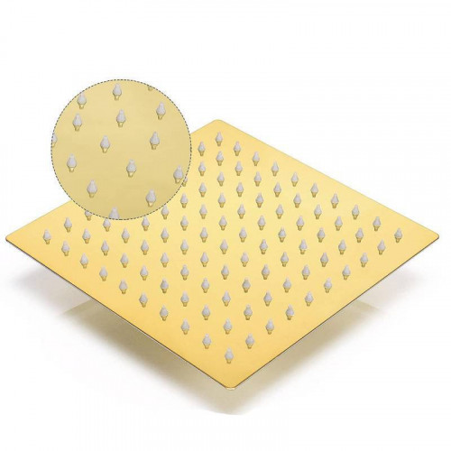 Cabezal: 20×20 cm (cuadrado), acero 304, dorado brillante.