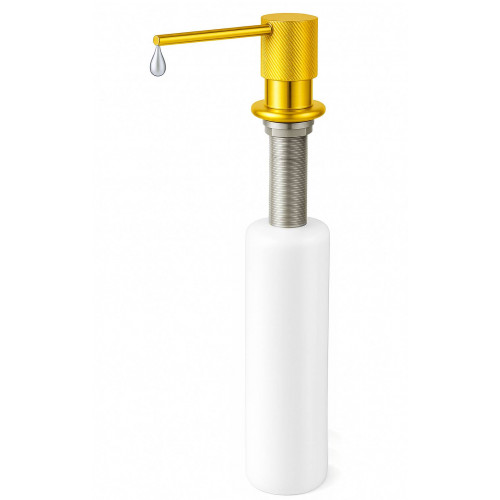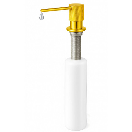 Dispensador Jabón Acero Dorado 500 Ml Pico Largo Premier , acabado brillante , tuerca para meson grueso