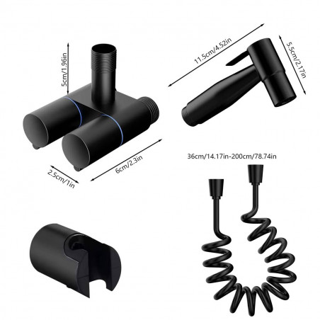 Bidet Sanitario Negro Valvula Desviador Manguera De Resorte extensible