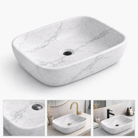 Lavamanos Blanco Vessel Coal Marmolado Mate Rectangular Tames