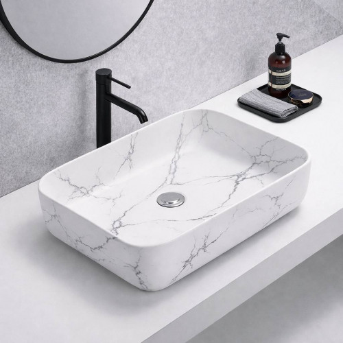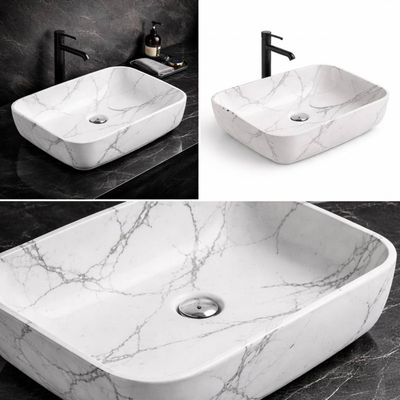 Lavamanos Blanco Pool Marmolado Mate Rectangular en porcelana