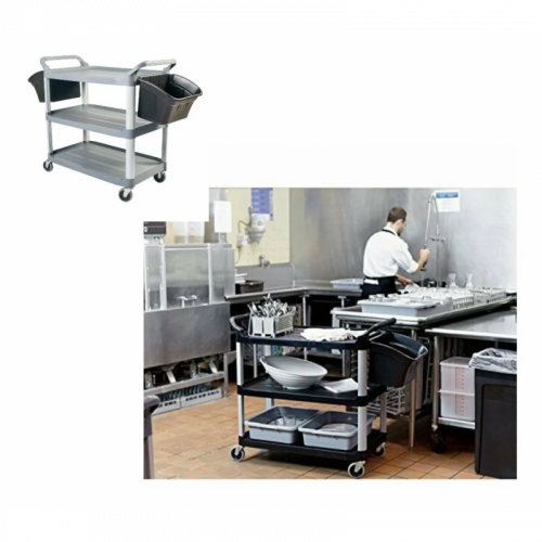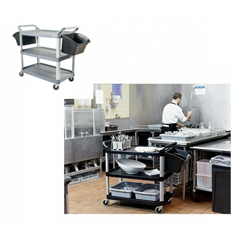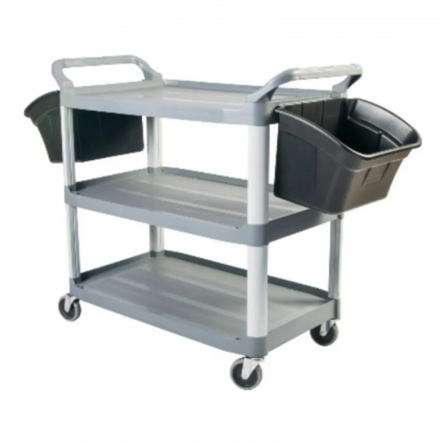 Carro de servicio para aseo-eventos resistente con canecas, Carro de limpieza de tres niveles, Carro para el aseo porta elementos de limpieza.