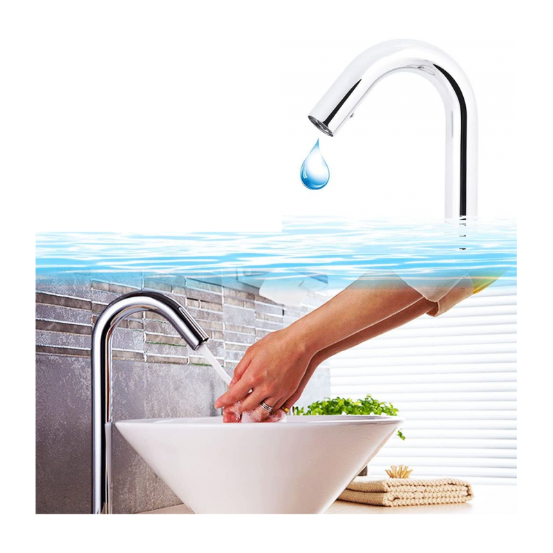 - Funcionamiento: Cuando el sensor está activado, el grifo automáticamente suministrará agua una vez que las manos estén dentro del rango de detección y se detendrá cuando retire sus manos.