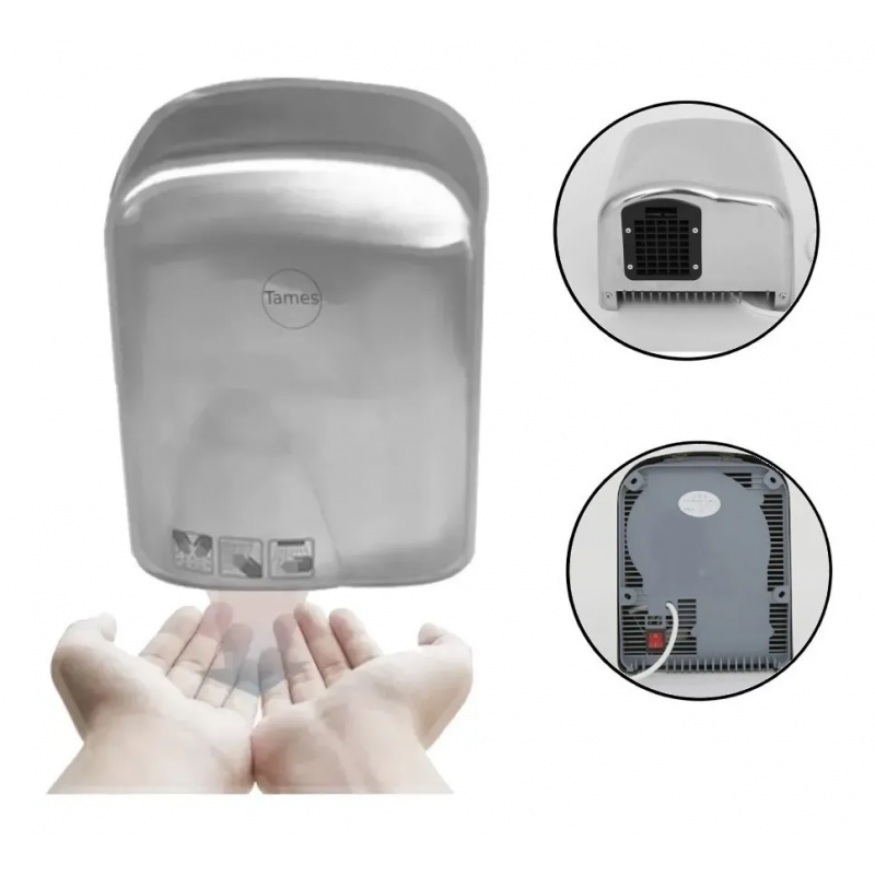 - Secador de manos de uso institucional elaborado en acero de alta resistencia, cumple reglamentación estandarizada.